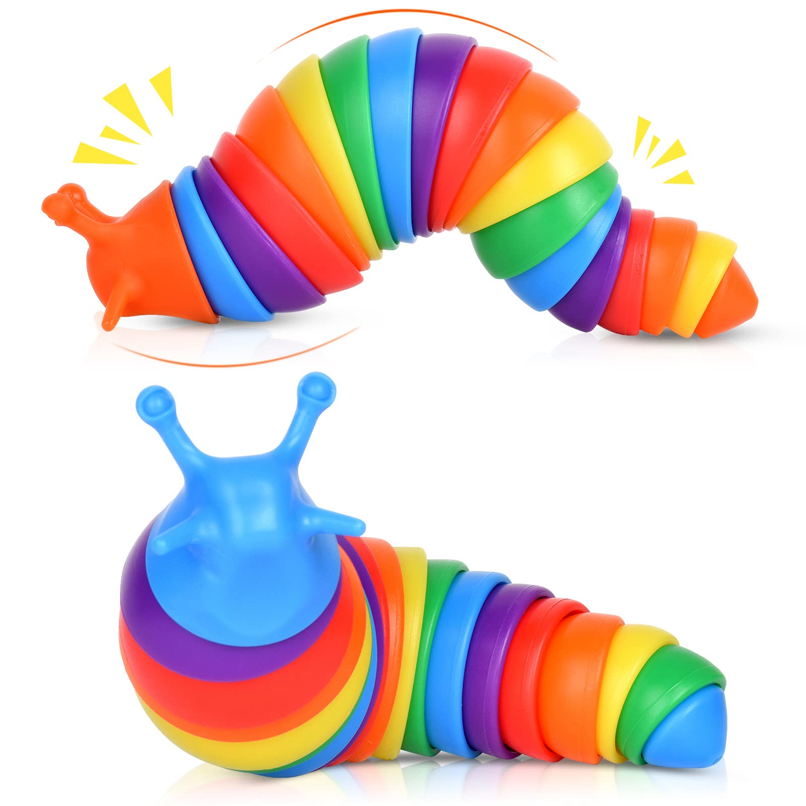Amazon Com Sensory Toys Fidget Slug 2 Pack 3d Printed Articulated Caterpillar Slug Toy Flexible Desk Pet Articulating Animal Toys Stress Release Party Favor Snail Gag Gifts For Kids Toys Games